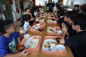 おいしいのできた。 隠し味が効いていたね。 3杯もおかわりした子もいた。 カレーのデザートは、ミヤマ産のスイカとブドウ とにかく、デカい。おいしかったです! |