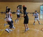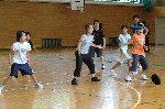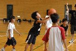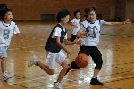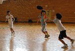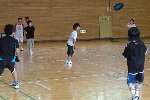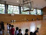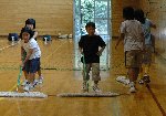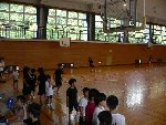 | 広い体育館で、思いっきり練習。低学年も同じメニューをこなします。 |