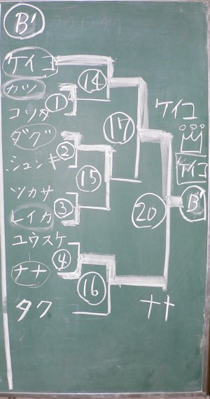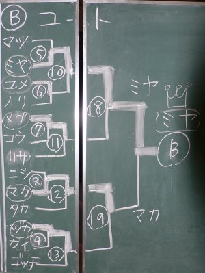| 男子VS女子 夏は40−14でしたが、その差はどうなっているでしょうか。 ふつうに考えれば、6年が多い男子がグッと伸びてその差をひろめたはずですが・・・ |
