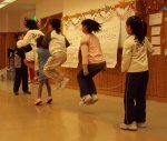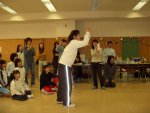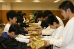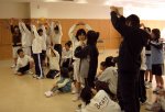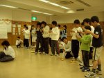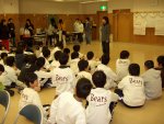 | 練習風景 6年生が良い見本にみんなしっかり練習してきました。 1年生から6年生までが同じ事をするから、下の子は目が育ちます。 |