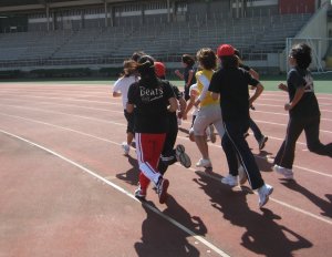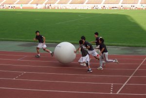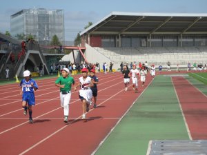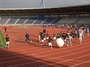 スポ少の親睦会には毎年参加していますが、今年は男子の番 一生に一度になるかもしれない経験。柏の葉公園陸上競技場のトラックを走ってきました。