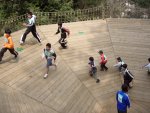 ここのアスレチックは水場があり、ぬれるとさむいぞー。着替え、靴まで持参して元気に全員が集まりました。
