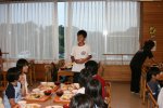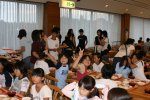 昼ご飯を食べ、宿泊施設は終了。「おせわになりました。」あいさつを終え、小学校へ移動します。 |