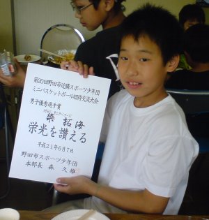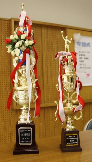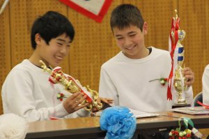 優秀選手と最優秀選手と カップ・・です。 とにかく、みんなが最後までがんばった なかでも光っていた二人。 |