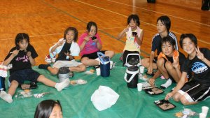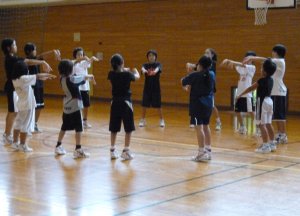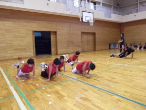 ![]() きれいな体育館で 練習です。 みんな声出してはりきって! |
