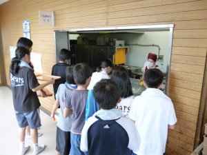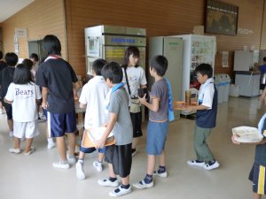 ![]() おつかれさま お菓子もらいに並んでます。 |