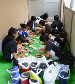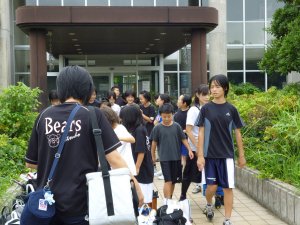 今年の合宿も 暑いのがサーとひけ 涼しい気候 前週までは暑い暑い で大変でしたが、当日はどんより の雨模様。 誰だ 雨女、雨男! でも、バテることなく こなせそうです。 お母さんたちも 気候により いろいろ 変更しないと行けないので ちょっと工夫したりして・・・ご苦労さまです。 大雨の中、昼食を運んで頂きました。 ありがとうございます。 涼しさもあり よく食べてくれました。 午後も練習あるんだから、そんなにもりもり食べないでいいよ。 縦割りで教え合う ちゃんとやってるか 見る 「リーダ-は自分の事だけやってればいいわけじゃなく 全体をみるんだよ。」 とちょっとコーチに怒られる場面もありつつ 良くやれていたと思います。 場になれてしまっている子と ちょっと緊張気味の子と いろいろいますが やるときはちゃんとやる! 基本ポリシーですから みんな がんばろうね。 練習!練習! バスケバカになりなさい 今年の子は今一 バスケバカになりきれず 強さが表れてきませんね。 強いベアーズの代は必ず 3分で集まり 鬼ごっことバスケで学年関係なく 遊んでいました。 意志の疎通と 共通の思い はそこからうまれてくるんだと思います。 強くなりたい! なのに 勝てなくてもどかしい女子軍。 気持ちを強く 己に勝つためにも たくさん自ら進んで練習をして上達してほしいデス。 ただ やらされてたって ちっともうまくならないよ。 |
