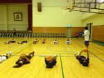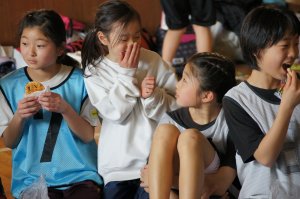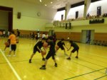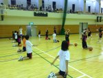 男子の参加は少なかったのですが、松戸市の小学校の部活はサッカーなので仕方ないです。 女子の1/4の人数だったので、午後の中学校との交流試合は たくさん回数できました。 |