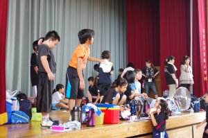 | 出し物は、みなそれぞれの実力。 景品つきのクイズや劇もあり、少ない練習時間としてはよい出来映えでした。しかしながら、始まって数秒で終わってしまったグループの劇はちょっとどうなのかな?でした。 そのグループがなかなか 練習にそろわず 結果的にそうなってしまったのすが、アドリブはできないけれど、短すぎて終われず、みんなにヤジ飛ばされながらもがんばっていました。 司会もなかなかでしたよ。 |