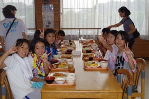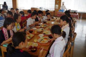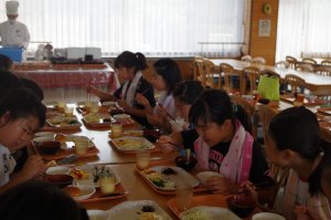 うれしい朝食 女子は整列早いね− |