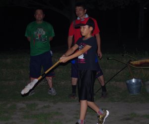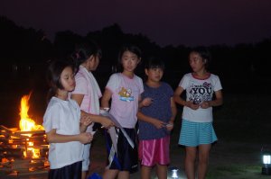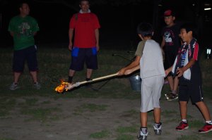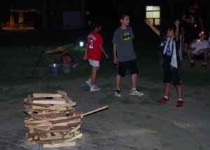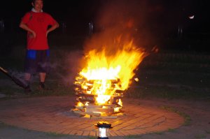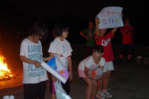 | キャンプファイヤー どうやら2年ぶりらしいです。 火之神さまの変な踊りで点火 |