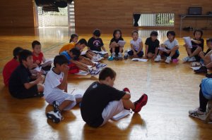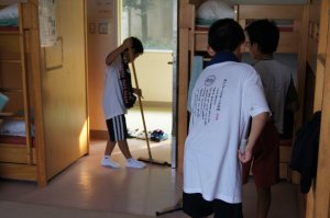 | 施設に入りました。いつもとおりのオリエンテーションをしてもらい、まず部屋つくり→風呂→ごはん→グループ活動です リーダーは、先読み行動をしないといけないのですが・・・・ |