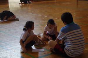 2、3年生には難しい 説明してもらいながら やってみます。エライ! |