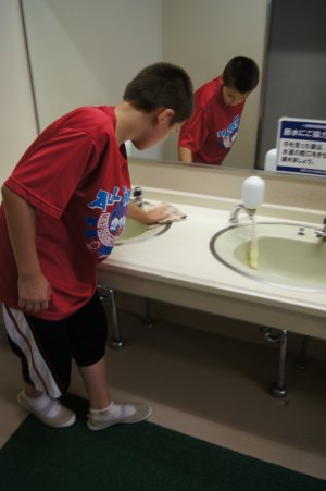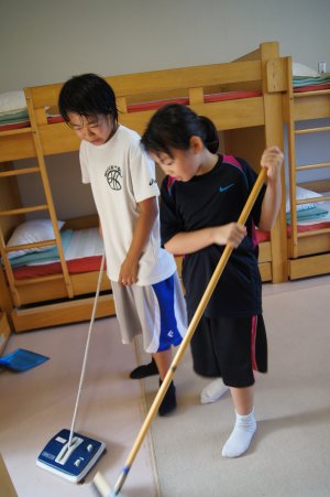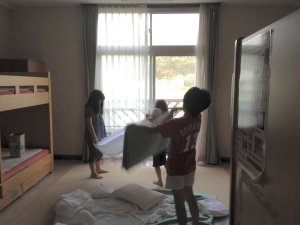 | 清掃活動です。 | シーツも自分たちでたたむんだよ | ||||