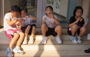 | このあと おやつを食べて 就寝です。 おやつはOBのマザーズ イッチママ と リカママから 手作りのゼリーでした。さっぱりしておいしかった。 |
