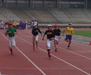 | 100mの決勝に残った | 女子の人数がいないため、同じチームで走り しかも女子は100Mは予選無し 一位は・・・・ |