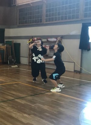 ![]() カップにボールをカポッてするんだ ⇐縄跳びで1曲中 ひっかからずに跳び続ける |