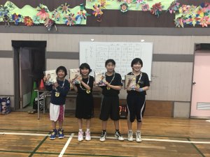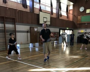 今回の親睦会は、親子ダブルスのバドミントン大会、バレーをやってる人が有利な感じ。 親の力は偉大、親子で力を合わせてがんばりました。 |