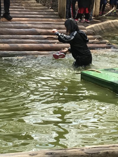まずは腹ごしらえ・・・・卒団式の時も大きな弁当箱の話がでたけど、やっぱり大きいね。たくさん食べて大きくなれなー | ![]() なんとか落ちないで踏ん張った。 |