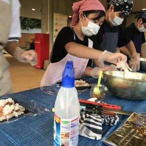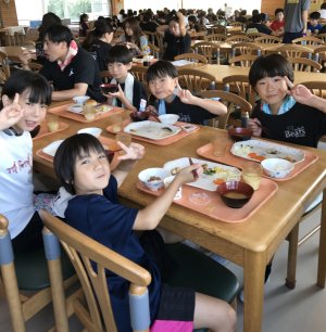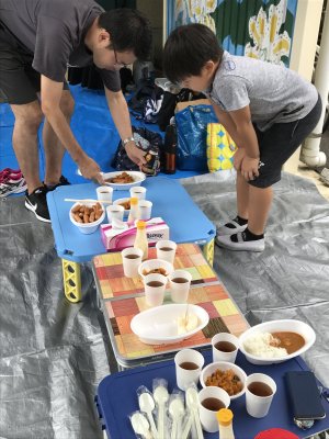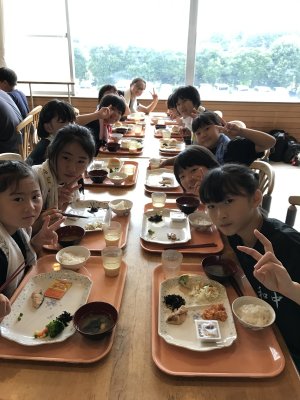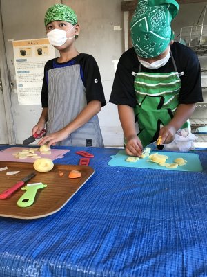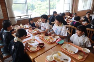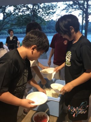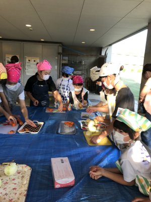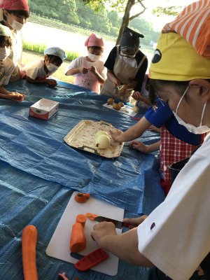 おいしいのできた。 隠し味が効いていたね。 3杯もおかわりした子もいた。 カレーのデザートは、ミヤマ産のスイカとブドウ とにかく、デカい。おいしかったです! |