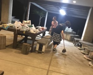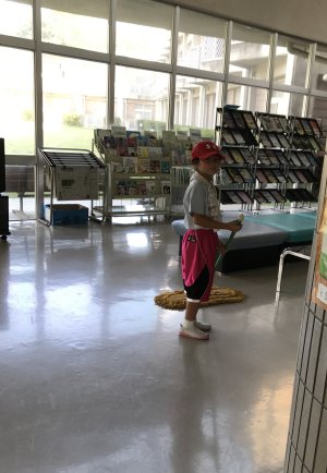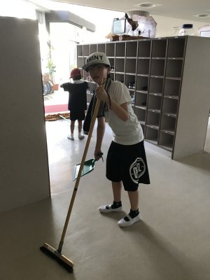 ![]() ホール掃除 がんばれ ほうきの使い方が・・・! |