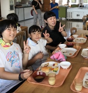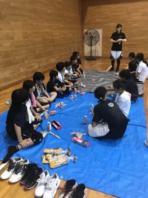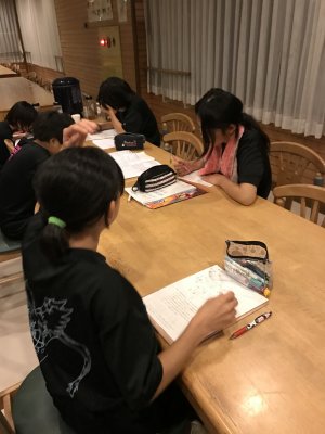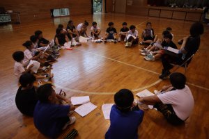 | まとめの会 みんなで反省用紙に記入して、そのあと お菓子タイム。 3日間おつかれさまでした。 |