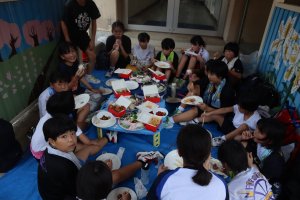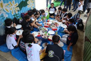 子どもたちが食べ終わり、ひと休憩たくさん食べて~残り物ですが・・・ |