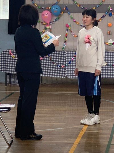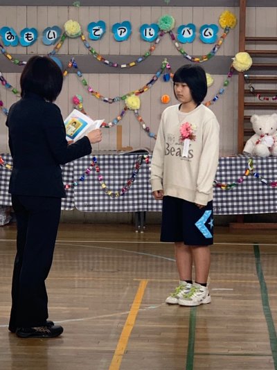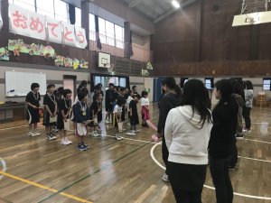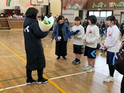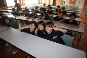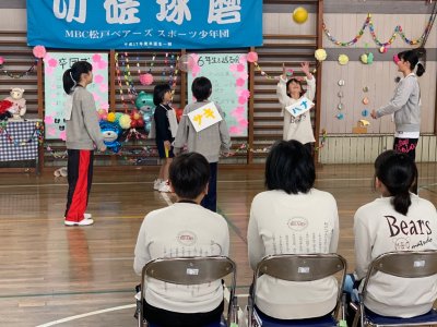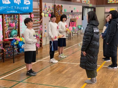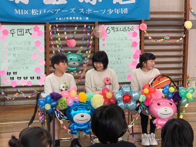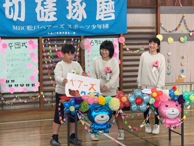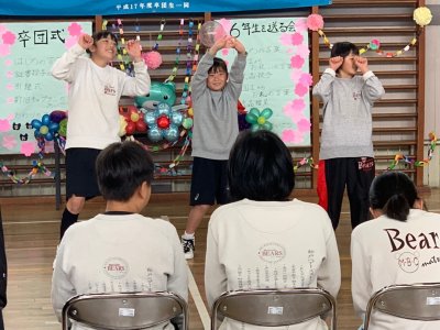 男子は感動と笑いの思い出のお手紙を書き手読み上げました。卒団生がクスクスと笑っていました。 女子は、四季の思い出を劇にして伝えました。 |