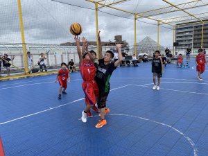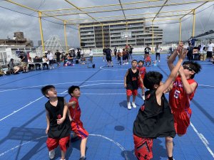 | 8月初めての3X3のカップ戦に参加。 猛烈な暑さ 2戦とも延長戦の末、決勝に出場。しかし!猛烈な暑さには突然の豪雨がつきもの・・・ |