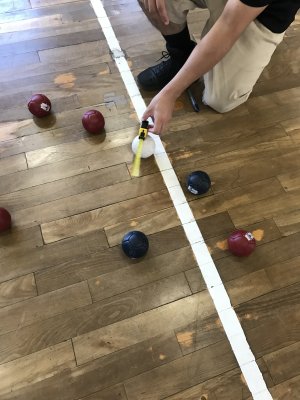 秋の親睦会は、パラスポーツのボッチャ なかなか力の加減が難しいのですよ。 |