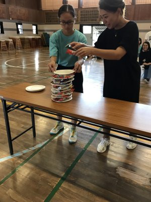 市松高校の生徒さんによるクリニックが復活 大きな声を出して教えてくださり、みんなは元気をもらいました。 |