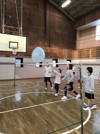 ボヨンボヨンのバブルボールでバレーボール 敗れたら負け 優しくコントロールして頑張って。 |