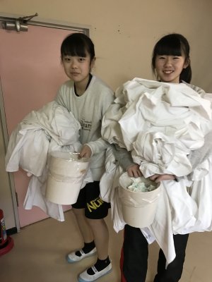 卒団記念品は、女子はSTARの横断幕。男子は体育館の整理棚を買ってもらいました。あと、床ワックスもいただきました。ありがとうございます。